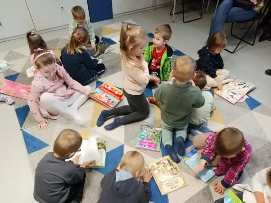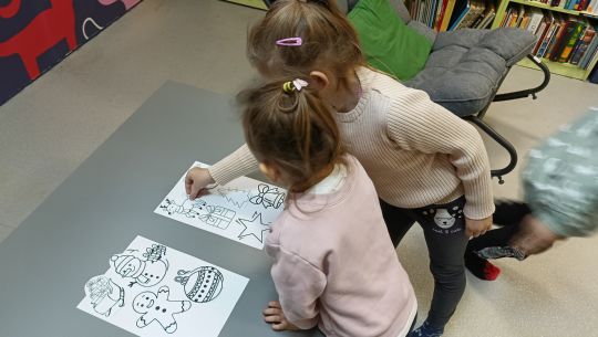 W grudniu odwiedziliśmy osiedlową bibliotekę. Wysłuchaliśmy bajki i zrobiliśmy papierowego Mikołaja
